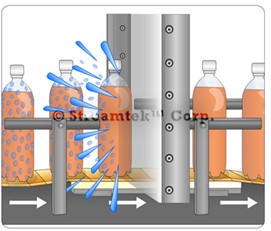 吹除瓶子上的水 -两个不锈钢标准气刀(型号为AE12SDS-1),用于吹除1升苏打瓶上的水,以便瓶上的标签的粘贴。
