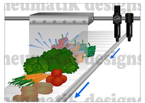 干燥水果和蔬菜-水果和蔬菜水洗后需要干燥。不锈钢超级气刀系统(型号为AE18SDS-2,包括空气过滤器、压力调节阀)的高速气流可去除水果和蔬菜上多余的水。