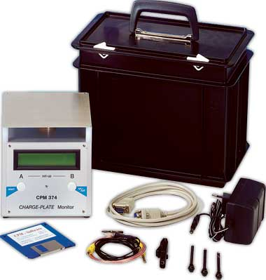 CPM 374充电板监测仪——通过自身的平行板电容器,可监测静电消除器的离子平衡度和静电消散时间,测试材料的静电衰减时间,人体行走静电位及静电场强。